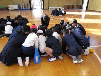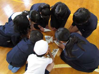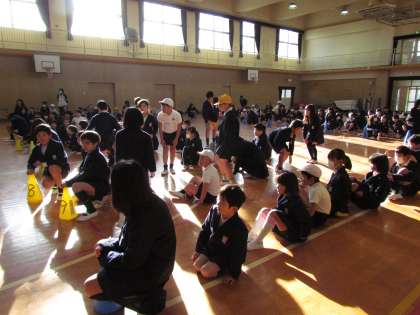 2月18日(木)朝の児童集会の様子です。今日は新聞ジグソーです。集会委員会の子どもたちが、事前に新聞紙をちぎり、ビニル袋に入れて、各グループに配ります。それを元の形に揃えていくというゲームです。早くできたグループもあり、なかなかできなかったところもありました。1位は1班でした。
