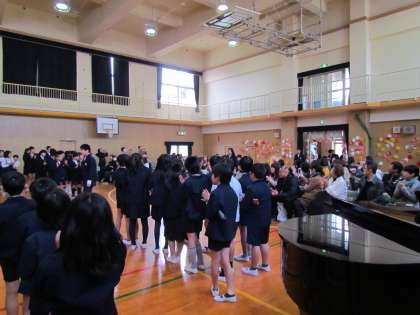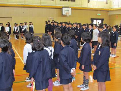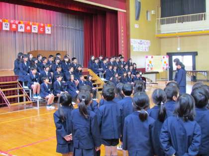 3月5日、土曜授業で「卒業を祝う会」をしました。1〜5年生の6年生に贈る言葉や演技、6年生からのお返しの言葉や演技、どれ一つとっても、温かい雰囲気に包まれ、保護者や地域の方から大きな拍手をいただくことができました。人を大切に思う心をこれからも育んでいきます。