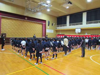 3月24日(木)講堂におきまして、平成27年度修了式を行いました。6年生が卒業して、いないため、ちょっぴり寂しい感じですが、まず最初に1年生から5年生の代表の児童に修了証を渡しました。その後、校長(私)の話、生活指導の話と続き、離任式を行いました。本年度末で3人の教職員が転任することになりました。詳しくは4月にプリントでお知らせします。最後に全員での校歌が講堂に響いていました。来年度4月8日の始業日には、全員元気に登校してほしいと思います。