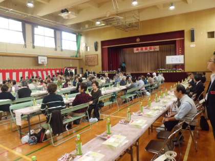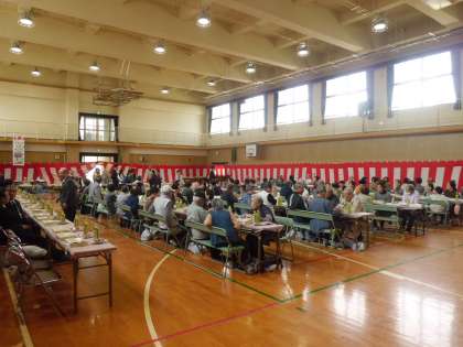 4月9日(土)天候にもめぐまれ、勝山小学校講堂で地域の方160名の参加があり、盛大にお花見の会が開催されました。お弁当を食べながらの歓談、途中で「ドジョウすくい」「南京玉すだれ」「勝山中学校吹奏楽部の演奏」「じゃんけん大会」もあり、楽しい時間となりました。