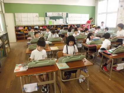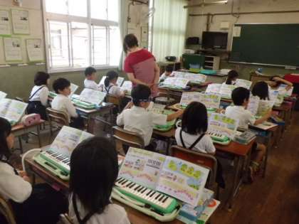 3時限目、2年の音楽科学習の様子です。「かえるのうた」を教材にして、鍵盤ハーモニカの練習をしました。一人一人、担任の先生に指使いを確認してもらい、リズムを合わせて曲を演奏する大切さを教わりました。