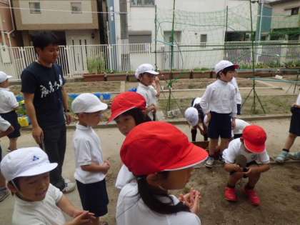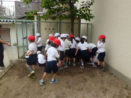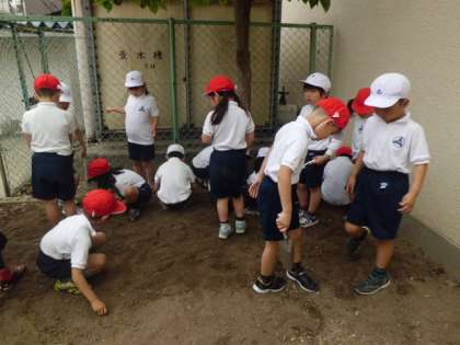 3時限目、1年が学習園の整備を1組・2組に分かれて行いました。土を掘り起こし、雑草やゴミなどをきれいに取り除きました。きれいにした学習園で、「ひまわり」などを栽培します。また、残りの時間で、一輪車に乗りました。多くの子どもが上手に一輪車に乗っていました。