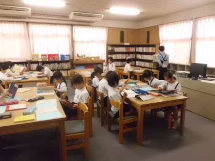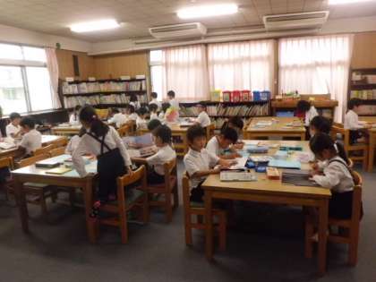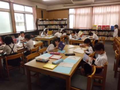 4時限目、2年の読書活動の様子です。自分の読みたい本をきちんと決め、熱心に読書をしていました。読みたい本が決まらない時は、図書館補助員の先生に相談することができます。図書館補助員の先生が来られるようになってから、読書の幅が広がりました。