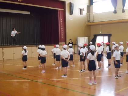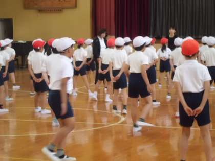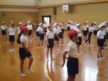 5月17日(火)3時限目、3年・4年の団体演技の練習の様子です。子ども達は、色々な動きをあっという間に覚えていきます。リズム感の良さも含めて、子ども達の持っている柔軟な力には驚かされます。