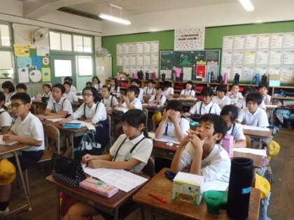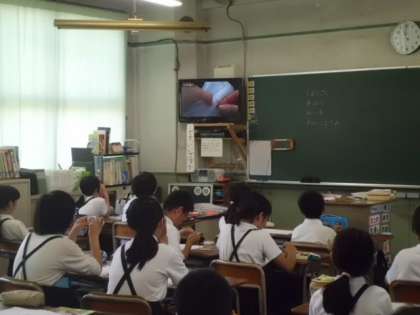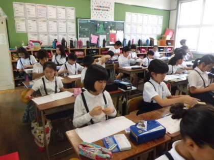 今日の3時限目、5年生が家庭科でなみぬいをしました。DVDの映像を見て、なみぬいの方法を学習してから、実際に行いました。普段、裁縫をすることはあまりないと思います。目の大きさがそろっていないところもありましたが、子どもたちは最後まで真剣に取り組んでいました。