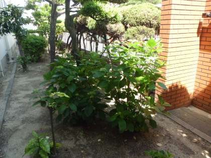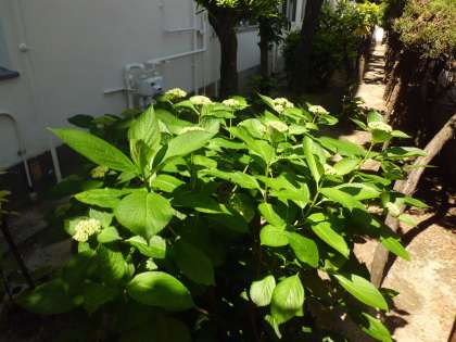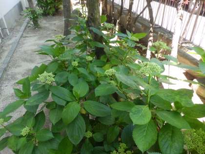 正門を入ってすぐ右手のところにガクアジサイが植えられています。花芽がつきはじめました。6月に入って雨にぬれるアジサイが美しくなります。京都宇治の三室戸寺や奈良矢田寺のアジサイがみごとに咲きだすことでしょう。