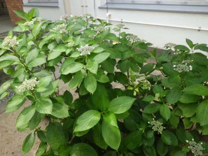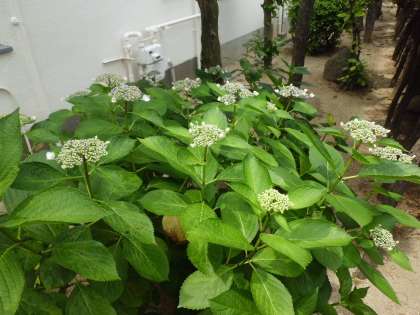 以前紹介した玄関の「がくあじさい」が花をつけはじめました。あじさいは梅雨時に似合う花です。6月に入ると、むしむしした梅雨をむかえます、