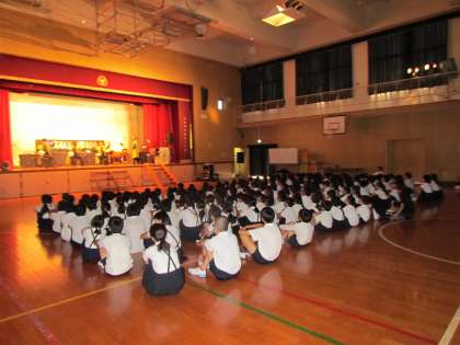 6月18日、音楽工房の皆さんによる音楽鑑賞会を行いました。四角・丸・三角など、形の違う民族楽器を中心とした演奏でした。多く楽器の様々な音色を聴くことができ、弦楽器のルーツについても知ることができました。また、子ども達の体験コーナーもあり、楽しい時間を過ごすことができました。