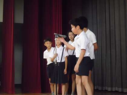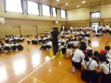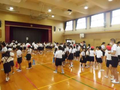 6月23日(木)朝の児童集会の様子です。今日は「しりとり絵描き大会」です。縦割り班でしりとりを考えながら、言葉ではなく絵を紙に描いていきます。しりとりはできてもなかなか絵に描けないようです。1位は5班と16班でした。