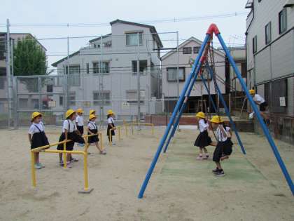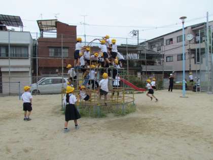 猫間川公園を後に、次は勝山西公園に行きました。ここではブランコやジャングルジムや滑り台を使って遊びました。中には「みんな集まれ!」と声をかけ、鬼ごっこをしてる子たちもいました。