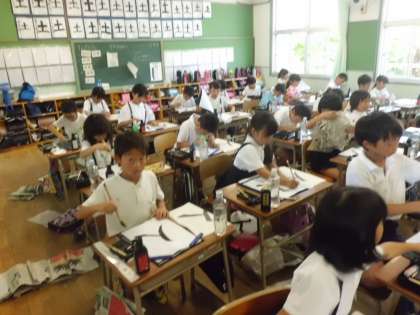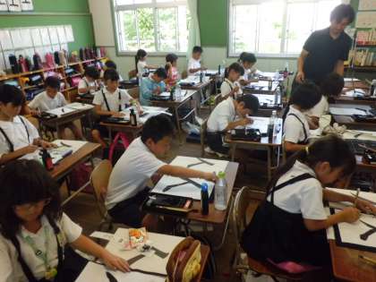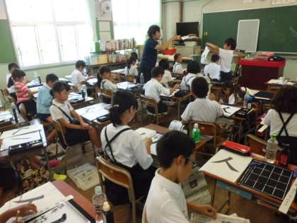 3年生の書写のようすです。「人」という字をひと筆ずつしっかり、丁寧にかいていました。