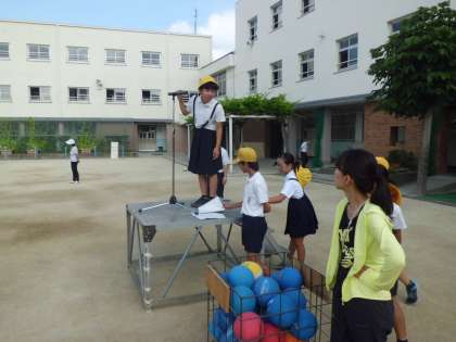 今日は7月7日(木)七夕です。天気がいいので、夜空の星がきれいに見えることでしょう。今日の児童集会は「なかよしボール運びリレー」です。縦割り班でペアになって足のところにボールをはさみ、コーンを回ってくるものです。二人のいきを合わせてということですが、ボールがあちこちにいって、なかなか思うようにいきませんでした。