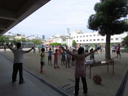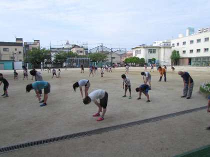 7月21日から、校庭でのラジオ体操が始まりました。午前7時という早朝にもかかわらず、たくさんの児童や地域、保護者の方が集まり、元気よく体操を行っています。ご来校をお待ちしています。
