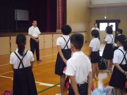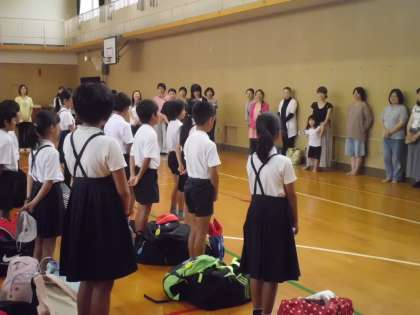 本日から29日までの3日間、5年生がハチ高原で林間学習を行います。写真は、出発式の様子です。期待に胸をふくらませて、元気よく出発しました。保護者の皆様、お見送りありがとうございました。