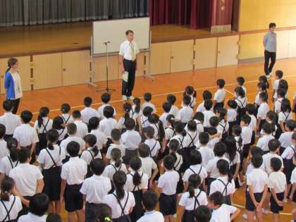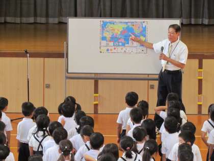 9月1日(木)平成28年度2学期の始業式を行いました。長い夏休み明けでしたので、登校した時の玄関でのあいさつの声が少し小さめでしたが、講堂では大きな声が出ていました。リオオリンピックでは選手の皆さんが頑張っていたことの紹介をし、子どもたちも夏休みの経験をいかし、2学期一人一人が頑張ってほしいという話をしました。生活指導の話の後、校歌を大きな声で歌いました。明日から本格的に学習をしていきます。暑い時にはエアコンをつけて、学習効果をあげていきます。