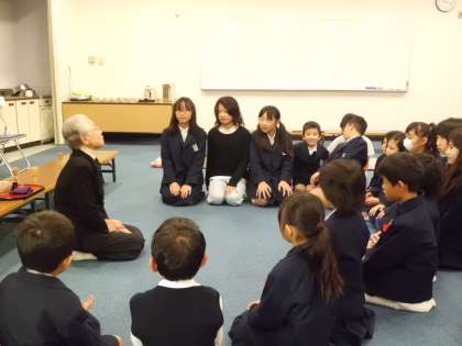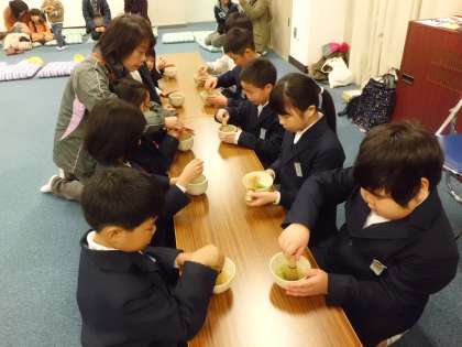 多目的室でお茶の作法を学びながら、おいしくお茶をいただきました。