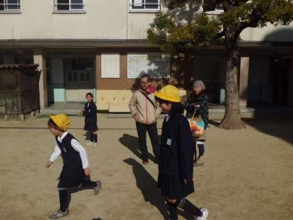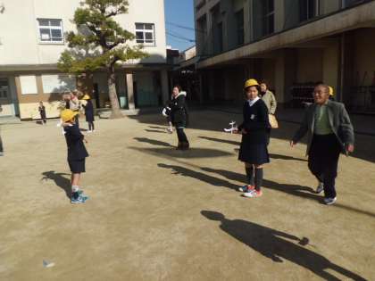 画用紙でグライダーを作り、運動場で飛ばしてみました。
