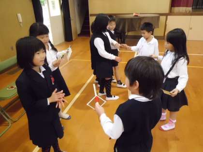 12月4日(水)に1・2年生で「おもちゃ大会」を行いました。生活科の学習の一つで2年生が作ったおもちゃ(8種類)を8グループに分かれてローテーションで楽しんでいきます。2年生が各コーナーで1年生に丁寧に教えている姿を見て、ずいぶんと成長した印象を持ちました。1年生は一つ上のお兄さん、お姉さんに教えてもらいながら、おもちゃ遊びを楽しむことができました。おもちゃの種類は、わりばしけん玉、牛乳パックけん玉、ペットボトルけん玉、カップけん玉、ふくろロケット、かみざらユーフォー、ペットボトルカー、さかなつりの8種類です。