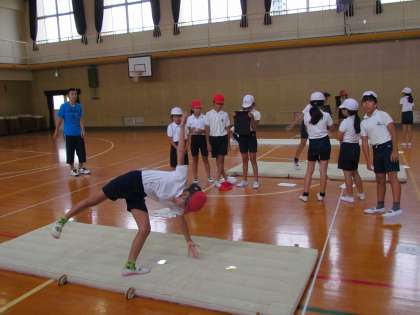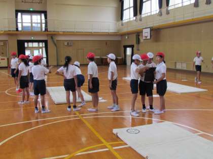 昨日9月15日(木)4時限目、5年体育科の学習の様子です。マット運動の側方倒立回転などを行っていますが、自分の動きを確かめることができにくく、友達に聞きながら行っていました。今回はタブレットを使って、動きの確認を行いました。まだ使い始めたばかりですので、操作の仕方がわかりにくいですが、だんだんと上手になっていくことでしょう。