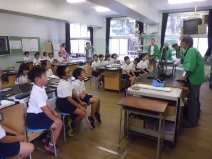 はじめに職人の方から説明を聞き、実際に三種類のペーパーなどを使って磨いていきました。どの子どもも集中して、最後にはピカピカのマイ箸をつくることができました。今晩はこの箸を使って、おいしい夕食を食べることでしょう。来週4日(火)には5年生が行う予定でしたが、台風接近のため、3日(月)に変更することにしました。