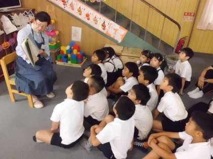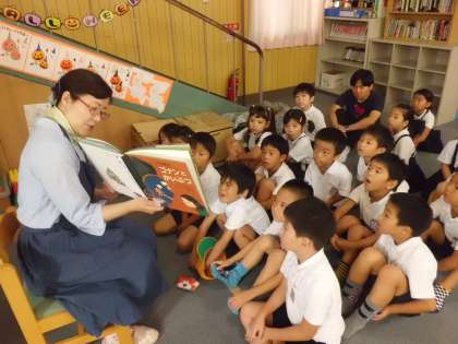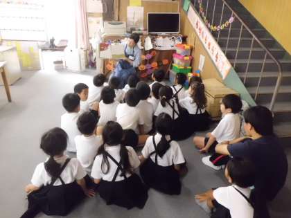 10月4日(火)1年生の学習の様子です。1組が図書館補助の方から絵本の読み聞かせをしてもらいました。2組は鍵盤ハーモニカを使った音楽の学習です。
