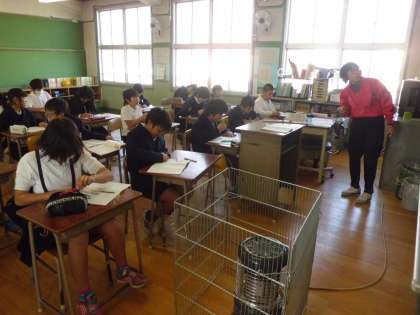 5年生の算数の授業の様子です。5年のクラスを2つに分けて指導しています。少人数なので、より細やかに教えることができます。