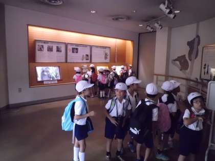 10月5日(水)1・2年生が天王寺動物園に行きました。台風の雨風が心配されましたが、時折、小雨が降る程度で動物園の1日を楽しむことができました。子どもたちはキリンやゾウ、北極グマなど、たくさんの動物を真剣に見ていました。図画工作の時間に動物の絵を描きます。