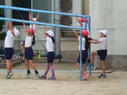本日の6時限目、4年生が「うんてい」や「鉄棒」を使った体育学習をしました。鉄棒では、互いにアドバイスし合いながら「逆上がり」に取り組みました。他の子の運動を見学する態度もよく、安全に気を付け、補助をすることができていました