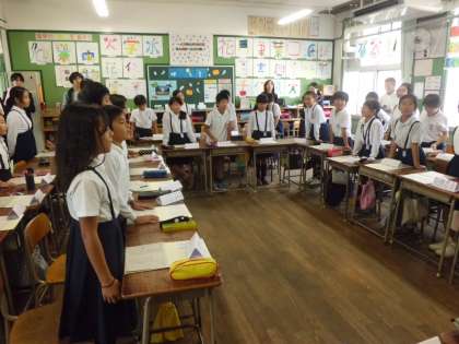 10月21日(金)6時限目に5年生で生野区の先生を対象とした学級会の研究授業を行いました。議題は「(室内)みんな遊び大会」をしようです。司会、副司会、記録など係りを決め、一人一人が学級会ノートを活用しながら、話合いを進めていきました。活発な意見が出て、10月28日の集会活動の内容が決まりました。