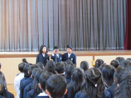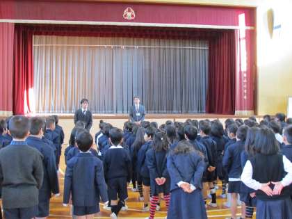 12月25日(水)に2学期の終業式を行いました。毎年24日でしたが、今年度は1日遅くなりました。子ども達は、少しあらたまった様子で先生の話を聞き、また元気よく校歌を歌っていました。その後、教室で担任より通知票を一人一人笑顔で受け取っていました。