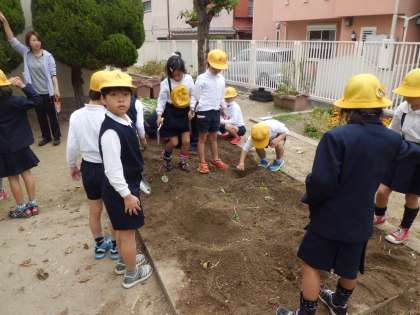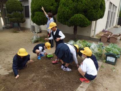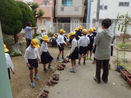 10月31日(月)2年生が学習園でいもほりをしました。春にいもの苗を植えましたが、ようやく収穫です。中には大きないももありました。
