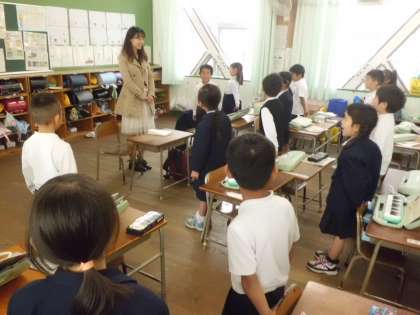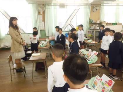 11月1日(火)4時限目にふれあい国際交流として、外国人留学生にきてもらい、各学級で子どもたちと一緒に学習をしました。その後、一緒に給食を食べました。今日は午後からふれあい集会として、お一人ずつ各国の様子についてプレゼンテーションをしてもらうため、休み時間の交流はあまりできませんでした。