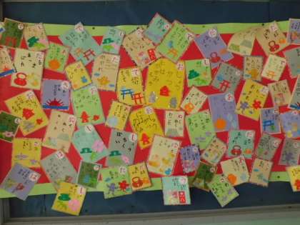 おととい、1年生の作品の紹介をしました。同じ玄関に「かるた」の掲示物があります。1月18日(土)に土曜授業として、2時限目に全学級道徳の公開授業、3時限目には講堂にてかるた(百人一首)大会を行います。ぜひ、来校いただき子どもたちの様子をご覧ください。