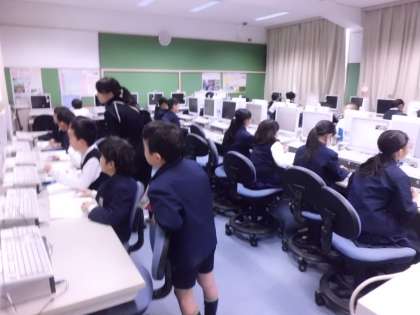 11月30日(水)4年生が国語の学習でパソコンを使って学んでいます。「和」と「洋」について、インターネットを使って調べました。