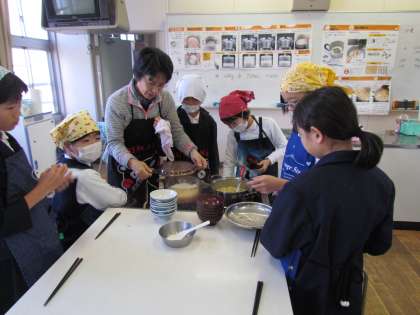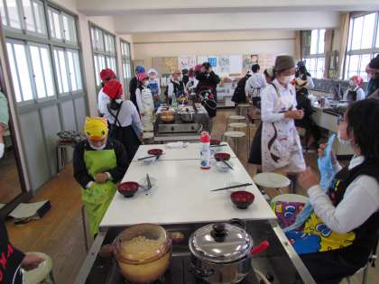 12月2日(金)5年生が家庭科で調理実習を行いました。ご飯とみそ汁です。1学期の調理実習や林間学習でのカレーづくりなどの経験を生かして、上手につくることができました。