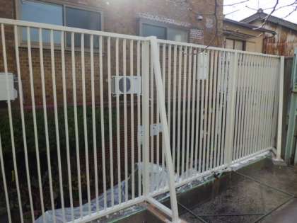管理作業員による外柵のペンキ塗り