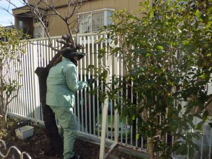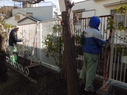本校の東側の外柵に錆が目立ってきました。本校管理作業員と勝山中学校管理作業員との合同で外柵にペンキを塗りました。ペンキがとびちらないように最初に養生した後、ローラーで丁寧に塗っていきます。塗り終わった後、外柵は見違えるように美しくなりました。