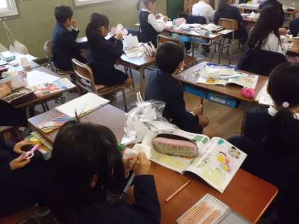 12月7日(水)2年図画工作の学習の様子です。ストローや紙コップなどを使って、思い思いに作品に仕上げていきます。