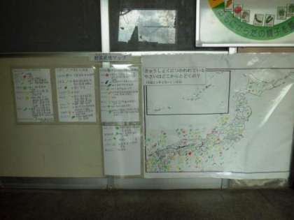給食用の掲示板及び給食室あたりに、給食委員会の児童が