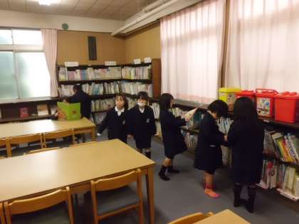 12月13日(火)1年2組の図書の時間の様子です。子どもたちは思い思いに本を借りて、静かに読んでいます。時間の終わりには、図書館補助員の先生に絵本の読み聞かせをしてもらいました。「ティダリク」という絵本です。短い時間ですが、絵本を見ながら、読まれるのを聞いて、想像をふくらませていたと思います。