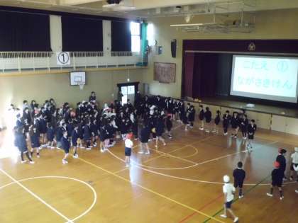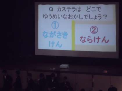 12月15日(木)、児童集会で給食委員会によるクイズ集会を行いました。図書館にある給食に関わる本の紹介もかねて、たくさんのクイズが出されました。「イクラ」がロシア語だったことも含めて、食についての知識を深めることができました。