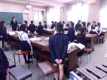12月19日(月)、4時限目、3年生の音楽科学習の様子です。斉唱では、口を大きく開けしっかりと声を出して歌うことができました。リコーダーの練習では、指使いに気を付けながらきれいな音を出すことができました。