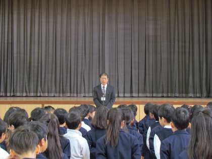 12月22日(木)8時45分から2学期の終業式を行いました。まず、私(校長)の話の後、冬休みのくらしについて生活面での話、最後に全員で校歌を歌いました。今年は曜日の関係で18日間の休みになります。各ご家庭で休みの過ごし方についてお話合いください。なお、冬休み中はホームページの更新が少なくなりますが、引き続き、勝山小学校ホームページをご覧ください。