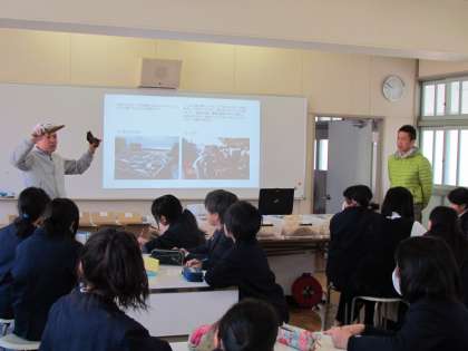 1月25日(水)2時限目、5年で食育の出前授業をしました。鰹節などを本枯節、鰹節、サバ節、むろあじ節、うるめいわし節など実際にそれぞれもってきていただき、試食もしました。鰹節の作り方、鰹節などを使ってだしをとるなど、日本ならではのことをあらためて知ることができました。