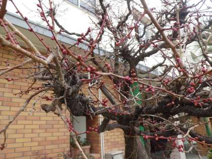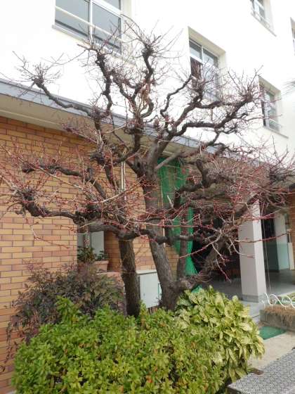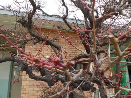 2月6日(月)職員室前の梅の木です。2月3日が季節を分ける節分、2月4日は立春。暦の上では冬から春へとうつりかわっていきます。職員室前の梅の木の花芽がふくらんできました。むかえの幼稚園の白梅は咲いていい香りをはなっています。