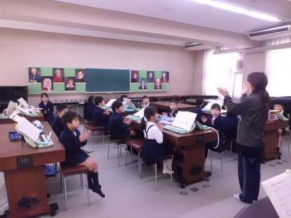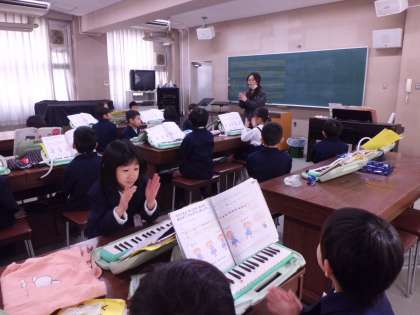 2月7日(火)1年2組の音楽学習の様子です。今日は音楽室で「歌声と楽器の音を合わせて演奏しましょう」という学習です。楽しく授業を受けていました。