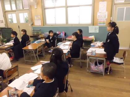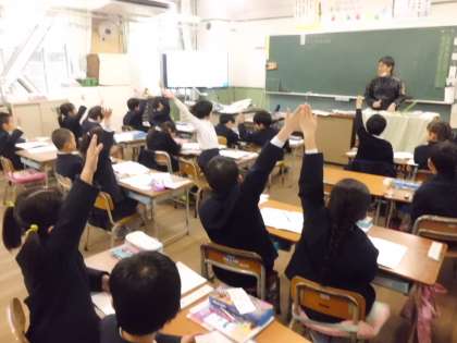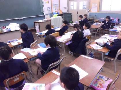 2月9日(木)1年1組算数の授業です。今日は時計の勉強をしました。視聴覚機器を活用し、子どもたちにわかりやすく授業を進めています。