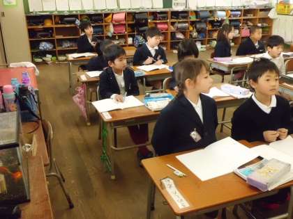 2月13日(月)2時限目、1年1組の算数科の学習の様子です。「とけいをよもう」の学習をしました。