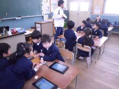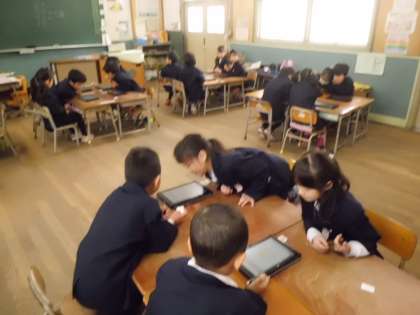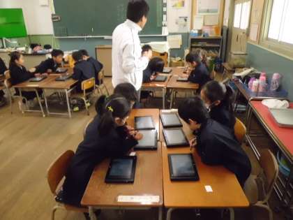 2月14日(火)1年1組算数の授業の様子です。今日はタブレットを使用して時計の勉強です。子どもたちは楽しいと言ってタブレットに向き合っていました。