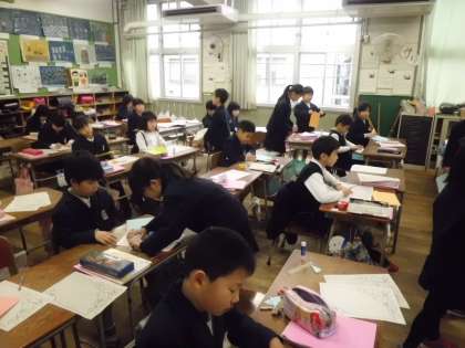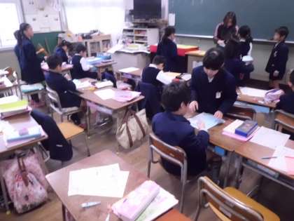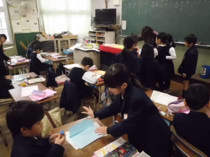 2月17日(金)2年生が手紙やそれを入れる封筒をつくっていました。手紙が入る大きさの封筒を頑張って折っていました。